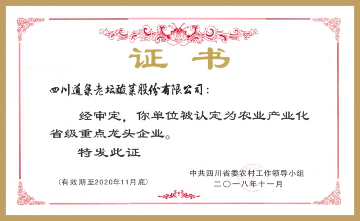 龍頭企業(yè)證書